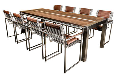 SELLA kann eigentlich auch alleine stehen, denn sein Alleinstellungsmerkmal ist das ideale Verhältnis aller Maße. Zusammen mit dem Gartentisch aus Edelstahl und Holz ABACUS jedoch ergeben sich Proportionen, bei denen man ohne zögern von "Wohlgestalt" reden kann.